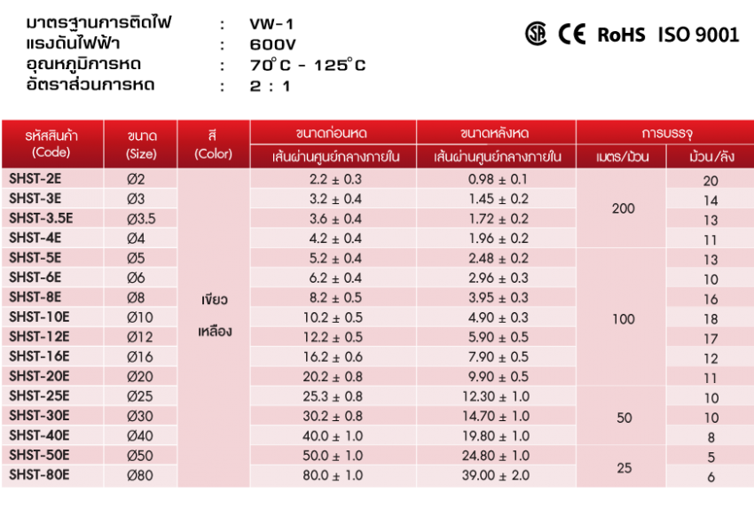 อุปกรณ์เดินสายไฟ และเชื่อมต่อระบบไฟฟ้า ท่อหดหุ้มสายไฟ รุ่น SHST-E